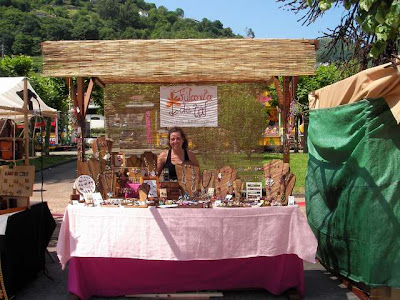 Empieza una nueva etapa para Fulanita, hace unas semanas decidimos salir a la calle con ella y presentar todos sus diseños directamente a la gente, y que mejor que participando en los mercados de artesanía, tradicionales o medievales, que recorren los pueblos de Asturias durante todo el verano. Gracias a una amiga que nos dio la información adecuada, porque en estos temas estábamos un poco perdidos, y nos presentó a una gran organización de eventos con la que estamos encantados. Llevamos solo tres ferias y puedo decir que me gusta estar los fines de semana y verano trabajando, cosa que pensé que jamás iba a decir! No solo sientes el gran compañerismo que existe y el calor de la gente, el ánimo de los que se acercan a ver "qué es eso de Fulanita de Tal?" y finalmente te confiesan que les gusta el colorido y que es muy original, sobretodo sientes la satisfacción de un trabajo bien hecho, de que por fin vas alcanzando pequeñas metas que ni si quiera te habías planteado, hasta la llegada final, que aún no sabemos muy bien cual será, pero el camino con toda vuestra ayuda y apoyo se está haciendo muy llevadero. Estamos felices y contentos y cada vez trabajamos con más entusiasmo y cariño, porque vemos el resultado, y todo esto, también se transmite en nuestros diseños o por lo menos eso intentamos!!