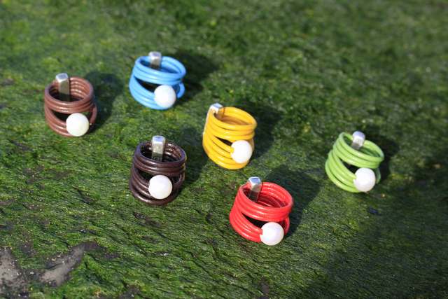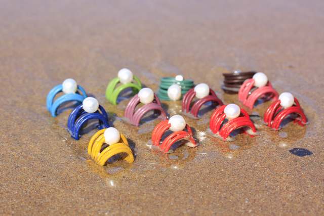 Este fin de semana mis anillos de cuero con una perla se escaparon del taller, creo que fue Marrón el que lo tramó todo y convenció a sus compañeros. Amarillo no estaba muy convencido, pero al final también se apuntó y Verde tuvo la gran idea de ir a la playa de la Griega.